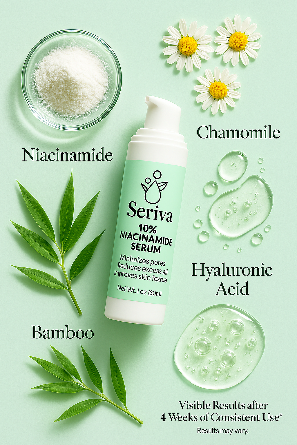 If your skin struggles with oily shine, enlarged pores, or redness, Seriva™ was created to target exactly these concerns. With a clinically supported 10% Niacinamide concentration, it works to visibly refine skin clarity and balance.